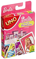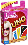 The Barbie UNO card game combines everyone's favorite family game with doll-icious Barbie graphics. Peggable closed. Ages 7 & older.
