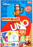 Join Handy Manny & all his toolbox friends in this easy to learn edition of UNO! The deck features large, easy-to-hold cards that help preschoolers build basic color & number skills. For 2 to 4 players.