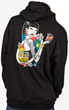 Sweatshirt features tokidoki x UNO logo on front and UNO graphics with signature tokidoki characters on back