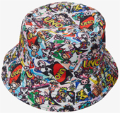Reversible Bucket Hat features tokidoki x UNO logo on one side; allover UNO graphics and tokidoki characters print on the other.