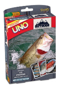 Join the great outdoors with the North American Fishing Edition of UNO! 112 Custom Cards feature the sports' most popular fish. Same great UNO play PLUS the exclusive Ranger card which forces opponents to show their cards. Be sure to shout "UNO" as you go for the win. Ages: 7+ | Players: 2-10 |