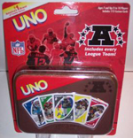 America's #1 Brand of Family Games takes it to the house in the National Football League NFC Edition of UNO. It's a wild scramble as players representing all sixteen teams from the NFC are featured on 112 Custom Cards. With the Exclusive CHAMPS Card & Rule, it's your turn to raise the Championship Trophy & claim victory! Packaged in this collectible tin, the National Football League NFC Edition of UNO is the perfect play call for football fans of all ages. So get ready to yell "UNO" & do that crazy end zone dance! Ages 7+ |
