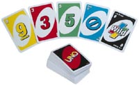Get into the fast fun for everyone with UNO. See why this color coded card game is such a popular brand of family Game. Be the first player or team to score 500 points. Points are scored by being the first to rid yourself of all the cards in your hand before your opponents. Play cards from your hand by either matching color or number with the top card of the discard pile. When you have one card left, yell UNO Get into the fast fun for everyone with UNO. See why this color coded card game is such a popular brand of family Game. Be the first player or team to score 500 points. Points are scored by being the first to rid yourself of all the cards in your hand before your opponents. Play cards from your hand by either matching color or number with the top card of the discard pile. When you have one card left, yell UNO! |