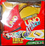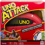 Brace yourself for an exciting, action-packed way to play UNO! If you draw the Attack! Attack! command card, you have to push the UNO Attack game's sleek electronic card shooter. If you're lucky, nothing will happen. But if you're not, the shooter will fire a stream of UNO Attack cards that you'll have to add to your hand! The shooter makes a variety of sounds to further increase the excitement. You can store the cards in the shooter, so the unit is both portable & storable.