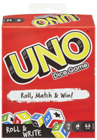 Classic UNO with the fast-paced action of dice! One quick roll of the dice can change an entire hand! The first player to get rid of all his dice wins. But he has to remember to yell "UNO"! For 2 to 4 players.
