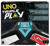 This special edition of UNO Triple Play is 3x the fun, with a special unit that holds 3 discard piles & rocks card night with suspense & surprise! Game play is like classic UNO, but players may only discard to any pile(s) that are lit up on their turn. And if any pile gets too many cards in it, it may OVERLOAD! If it does, the LED display dictates how many cards must be drawn! Lights & arcade sounds on the machine create maximum anticipation & excitement, the 'Timer Mode' makes the game move even faster & with the 'Stealth Mode' you never know which pile is about to overload!